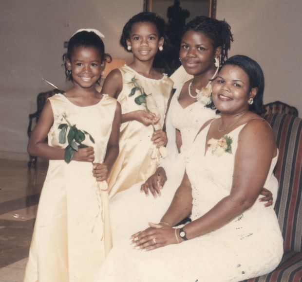 Andrea, age 10 (left), celebrates her uncle’s wedding in New Jersey, with her older sisters, Elizabeth and Latricia, and their mother, Johnetta.