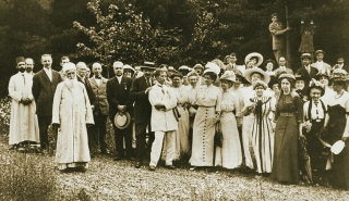 A Bahá’í coffee merchant named Roy Wilhelm offered his large property in New Jersey, U.S., for the festive event. On June 29, 1912, tables were set up in a grove of pine trees. About 200 people joined the celebration, including members of the Jewish, Christian, and Muslim faiths, as well as Bahá’ís. Among them was Louis Bourgeois, the architect who later designed the Bahá’í Temple of North America. The artist Juliet Thompson, who painted ‘Abdu’l-Bahá’s portrait, also attended.