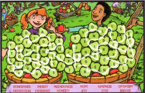 1) compassion, 2) courage, 3) fairness, 4) friends, 5) justice, 6) kindness, 7) respect, 8) support, 9) team, 10) unity Page 8: A) 2, B) 4, C) 3, D) 8, E) 1, F) 7, G) 6, H) 5