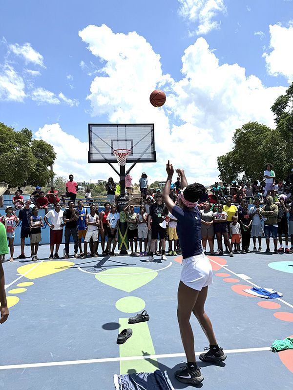 A: Just connecting with everyone. Some of the places that we go, like the camp in Jamaica … a lot of the kids were playing basketball for the first time. This camp is where they get to escape and have fun for a little while. So for me, connecting with the people, not just with basketball, [is important]. Like sitting down and talking to a girl that’s my age, that’s sharing my experience—what I’m going through, what she’s going through …