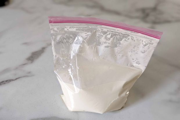 You’ll Need: 1 cup (237 mL) heavy cream, ½ cup (118 mL) milk*, ⅓ cup (66 g) sugar, pinch table salt, ¼ tsp (1.2 mL) vanilla, sealable quart and gallon bags, 2 cups (577 g) coarse salt, bowl of ice cubes