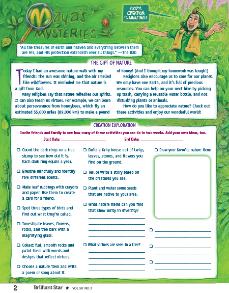 Religions also encourage us to care for our planet. We only have one Earth, and it’s full of precious resources. You can help on your next hike by picking up trash, carrying a reusable water bottle, and not disturbing plants or animals.