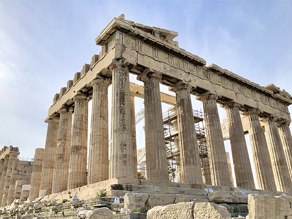 The Parthenon is made up of 22,000 tons of marble, which is about the weight of 733 humpback whales! And all that marvelous marble was collected by hand and transported with horse-drawn carts from a mountain that’s 10 miles away!