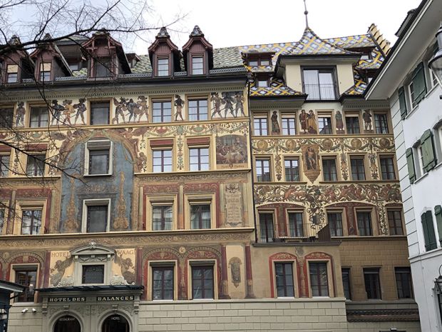The charming city of Lucerne felt like any other modern metropolis—until we reached the river and gazed across to the Old Town. The tall, colorful buildings were lined up like an elegant parade from another century. Enchanted, we crossed the old wooden bridge and felt like we were traveling back in time.