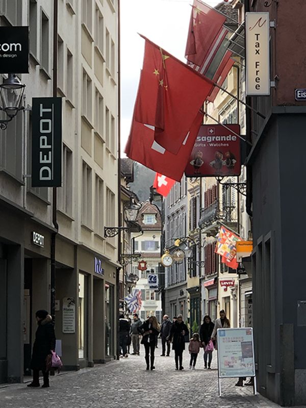 At lunch time, we began wandering around in search of some Swiss sustenance. A young bearded man wearing a backpack approached us. “Excuse me, can I ask you a question?” he inquired in a Swiss accent. We assumed he was a fellow tourist, but then he asked, “Are you afraid of the coronavirus?”