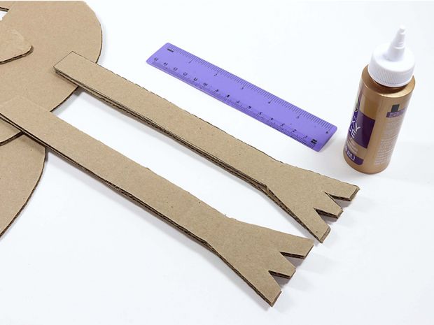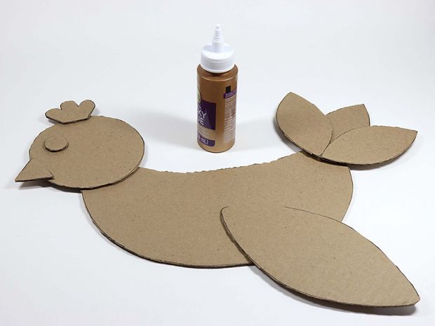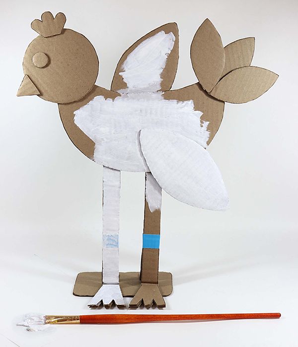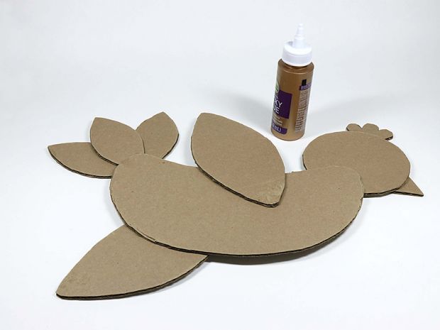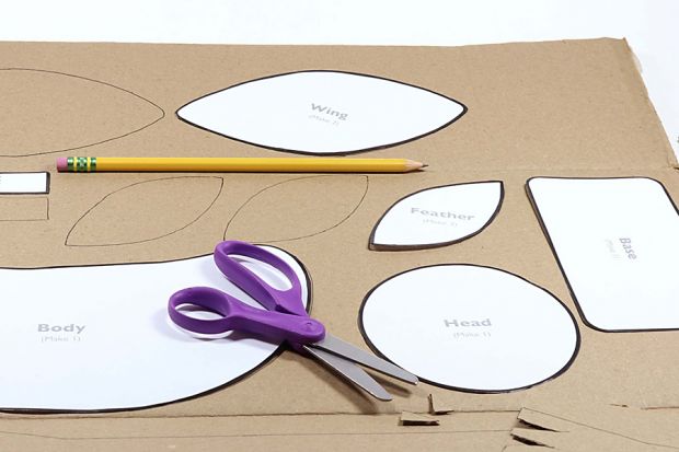 Step 2: On cardboard, trace each shape. For wing and support, make two of each. Make three feather shapes and four legs. Cut out all cardboard shapes.