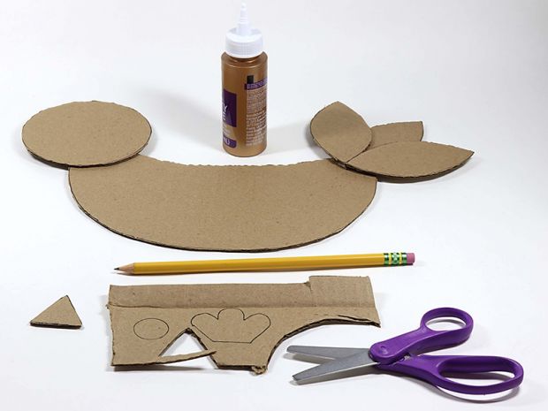 You’ll Need: Template (printed from PDF), thick cardboard, pencil, scissors, duct tape, tacky glue, ruler, paintbrushes, water for painting, white and colorful acrylic paint, black permanent marker, small rocks