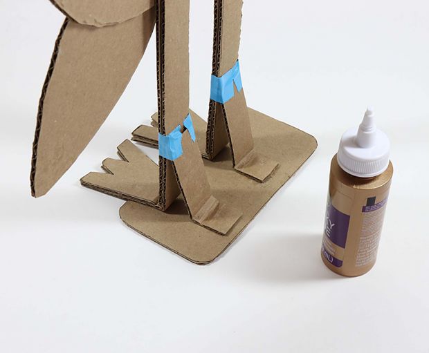 Step 8: Glue heels of bird’s feet and support tab bottoms to base. Tabs should extend back about ¾" (1.9 cm) from each foot so bird can stand on its own.