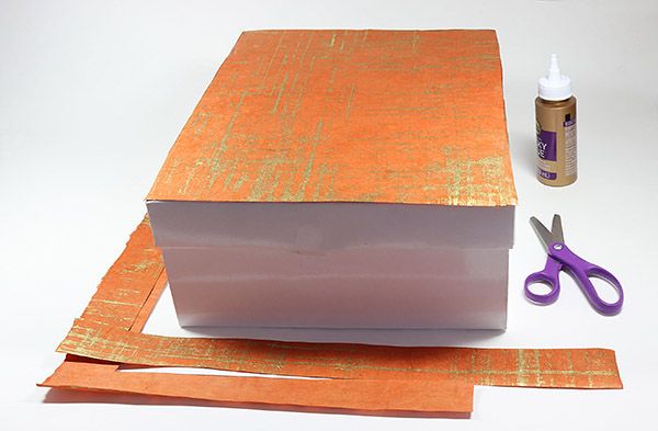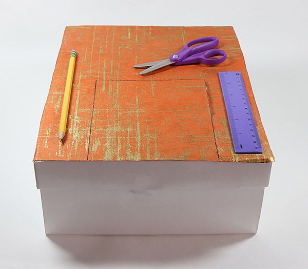 Step 1(b): Cut tracing out. Spread glue evenly on top of box lid and cover with paper.