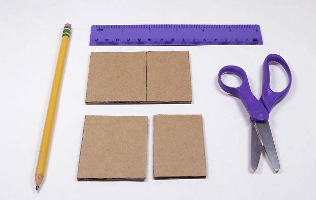 Step 1a: Draw a line across both pieces of cardboard that’s 2" (5.1 cm) from a short end. Cut along lines to make four rectangles.