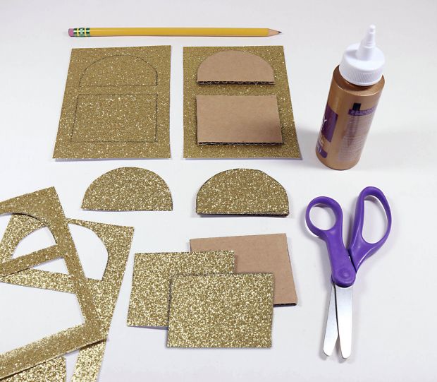 Step 2: On paper, trace each cardboard shape twice. Cut out shapes and glue to front and back of cardboard pieces.