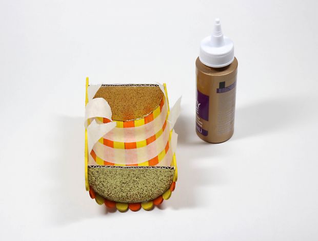 Step 9: Glue ½" x 2½" (1.3 x 6.4 cm) paper strips to cover exposed cardboard edges.