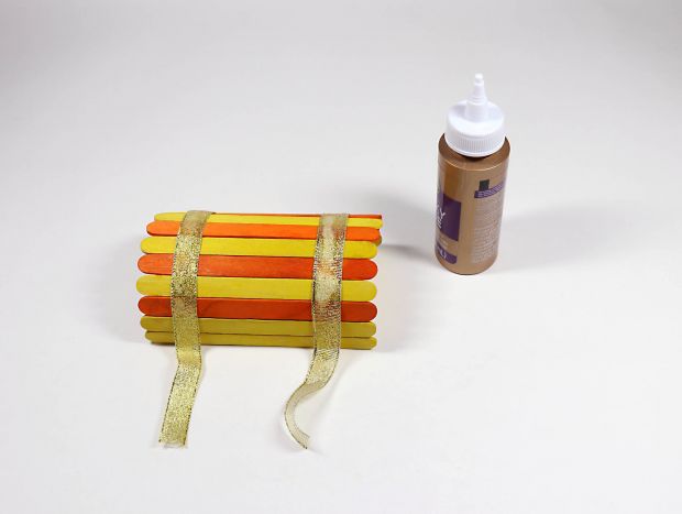 Step 3: Place seven sticks in an even row to form bottom of box. Tape across center to hold sticks in place.