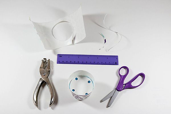 Step 6: Cut off balloon’s knot to deflate and remove it from papered balloon. Punch four evenly spaced holes ¾" (1.9 cm) from opening’s edges.