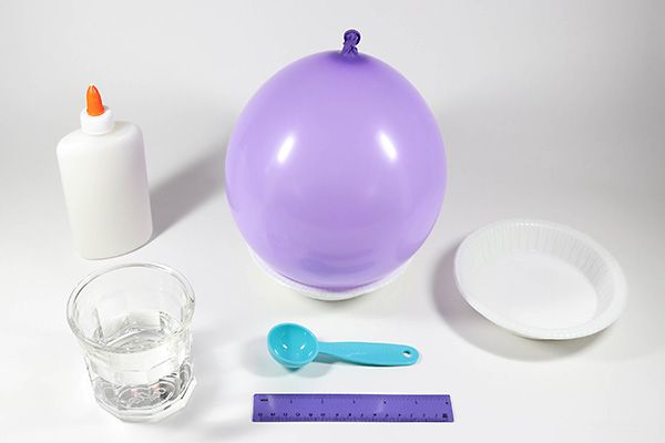 Step 4a: Blow up balloon to 7" (17.8 cm) and knot the end. In bowl, mix ½ cup (118 mL) glue with 2 tablespoons (29 mL) water for a thick mixture.* Set balloon in other bowl.
