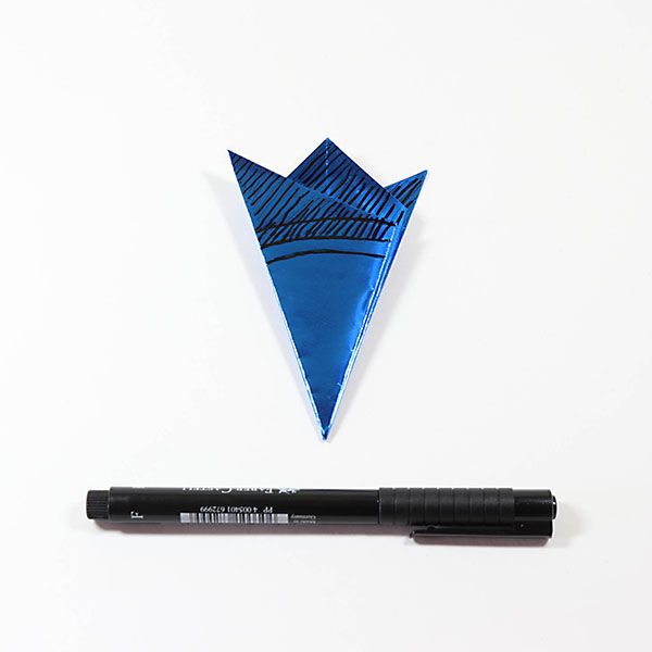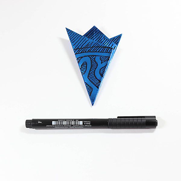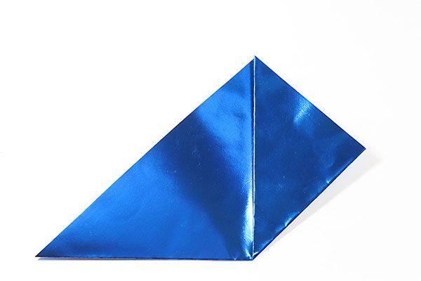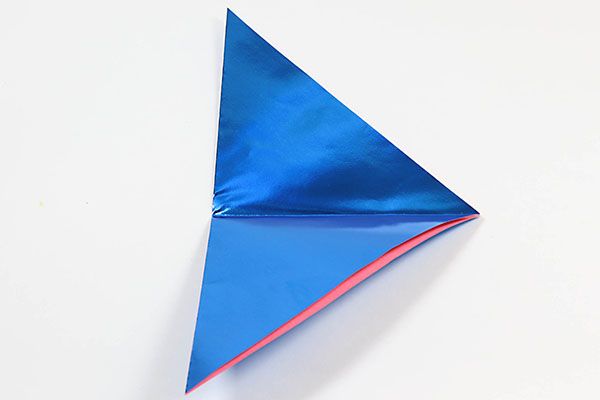 Step 1a: To keep lines you’ll draw later on back, start with front side facing up. Fold origami paper in half so corners meet.