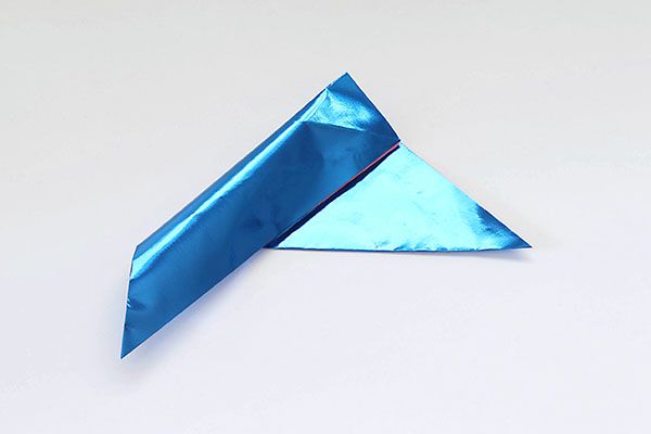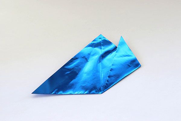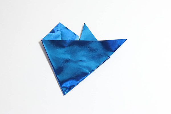 Step 4: Fold far right corner of top flap to the left, so its lower edge meets paper’s left edge.