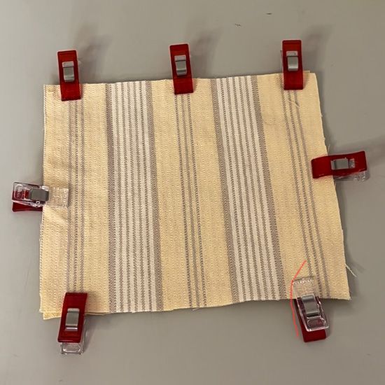 - Two squares fabric 5" x 4" (12.7 x 10.2 cm). Cotton works well; I used a thrift-shop curtain.