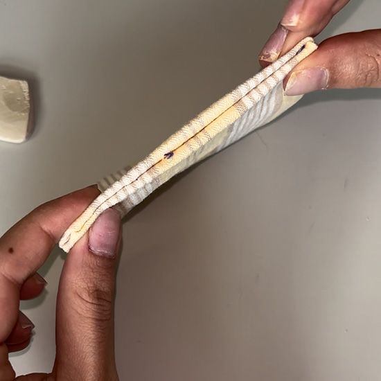 Step 7: Push the flaps down with your fingers for a neat, even seam. To close the coaster, we’ll make another seam. Thread your needle and knot the end (as in Step 1).