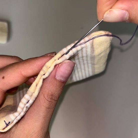 Step 10: With needle, push tail of thread inside seam to hide it.