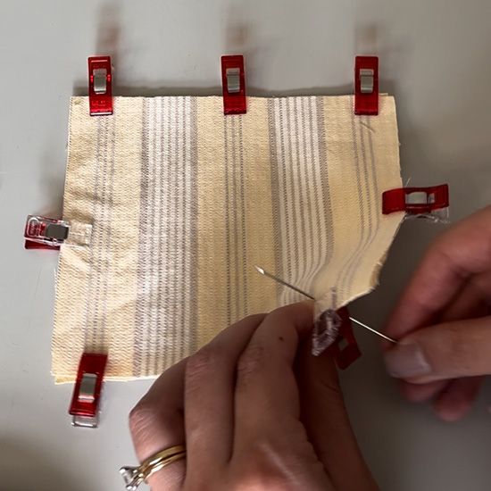 Starting from inside the opening, poke your needle through one side and catch the other side of the fabric. Repeat until you’ve sewed the opening closed. Make a knot to secure.