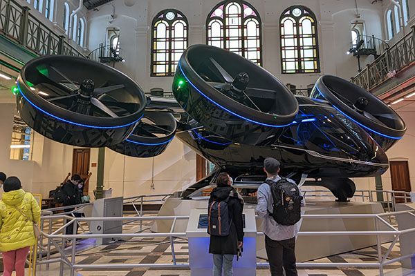 The Bell Nexus electric Air Taxi, recently on display in Washington, D.C., is a developing concept for efficient air travel within cities.
