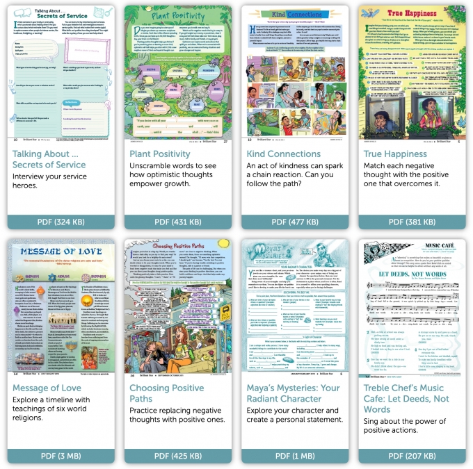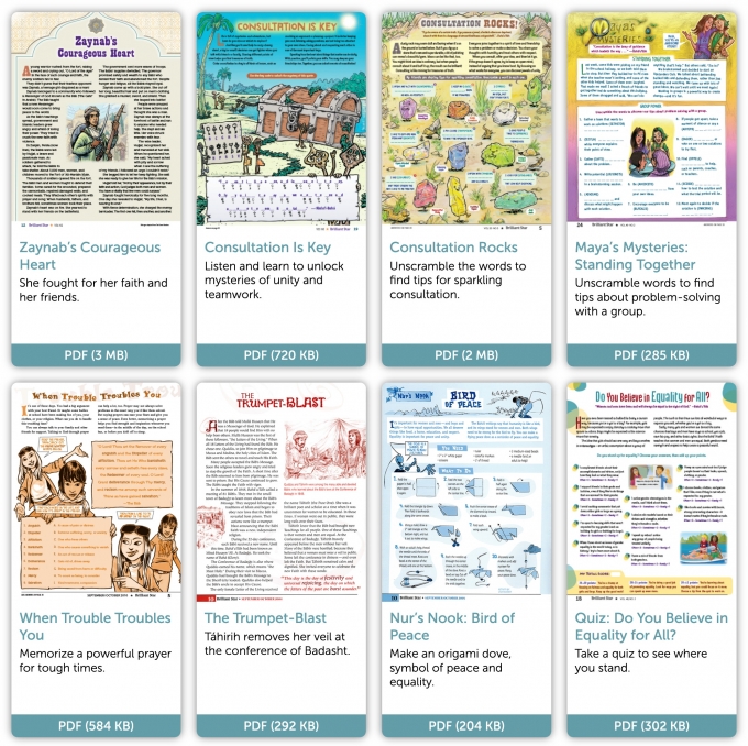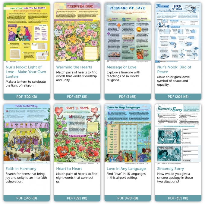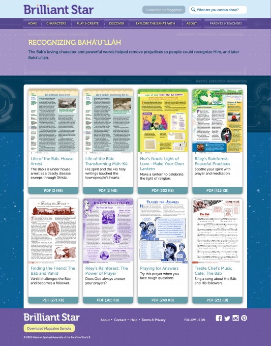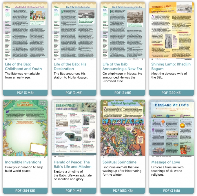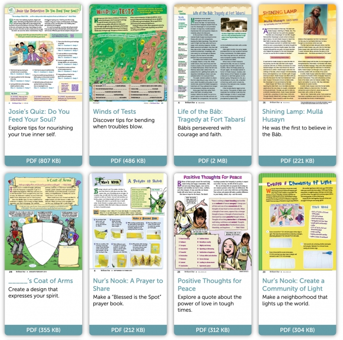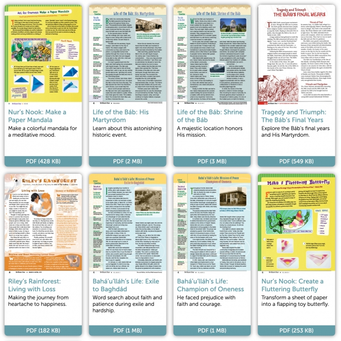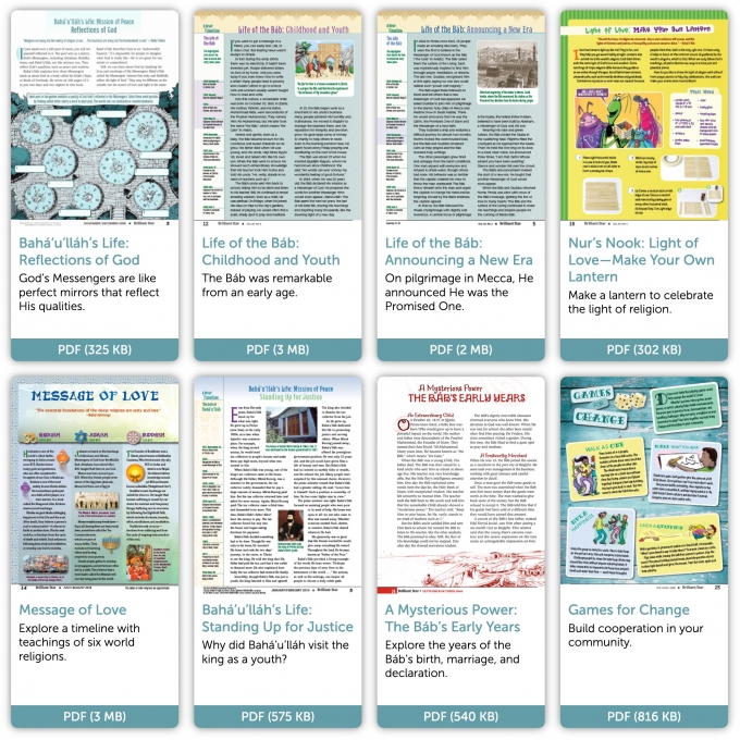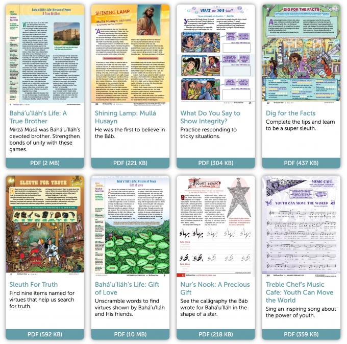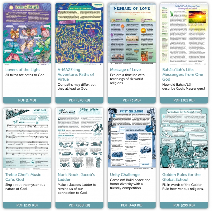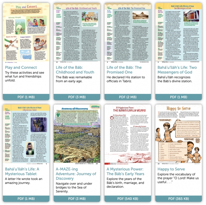 Brilliant Star presents a wide range of stories, activities, and songs that can be used to complement the Ruhi lesson plans in children’s classes. This outline of themes from each Ruhi Grade 3 lesson offers links to Brilliant Star materials that can be used along with the Ruhi curriculum. We’d love to know how you’re using Brilliant Star in your classes and what other materials you’d find helpful. E-mail us at brilliant@usbnc.org or share your ideas in our Facebook group, the Brilliant Star Idea Exchange.