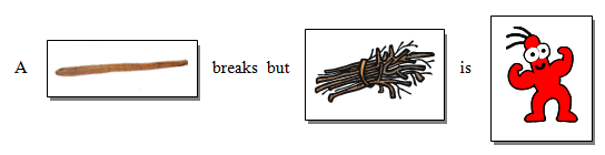 As another form of visualization, students can draw or cut and paste representative pictures on top of the written words. For example, this quote by Tecumseh*, “A single twig breaks but the bundle of twigs is strong,” might be illustrated as follows: