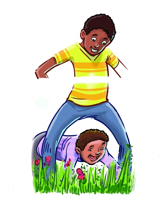 Divide the group into pairs if you wish. Kids work with a partner together or on their own to create an obstacle with their bodies that the other players can safely move through. For example, make a tunnel to crawl through or an obstacle to run around. Use your imagination and enjoy challenging each other.