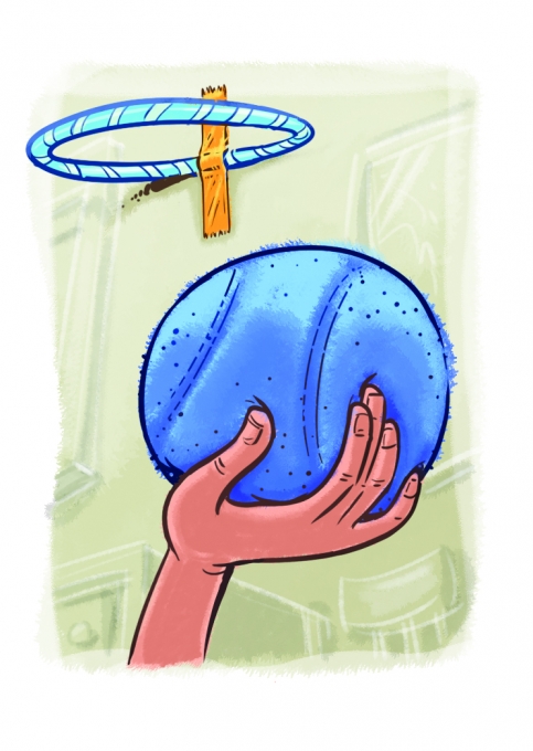 First, put a Bahá’í quote on index cards by writing one word per card. Make two sets. Then set up a hoop. Create two teams. Players take turns shooting baskets with foam ball. Each basket earns their team a word. The first team to earn all the words for their quote and put them in the right order wins.