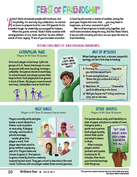 This guide is a tool to assist teachers of children’s classes and junior youth animators in using Brilliant Star’s “Join Together” issue in the classroom. While Brilliant Star is developed for kids aged 7-12, many younger and older kids enjoy learning from it. Activities can be adapted and expanded to engage groups ranging from ages 4-14. You’re invited to explore this guide and to share your own ideas in our Facebook group, Brilliant Star Idea Exchange.