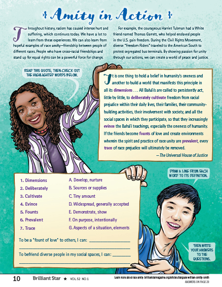 Ask students: What can you do to be a “fount of love” to others? - How can we create spaces where everyone can feel the spirit and practice of race unity?