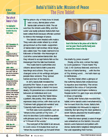 This story introduces readers to the Fire Tablet—a powerful tablet revealed by Bahá’u’lláh. It explores the circumstances surrounding its revelation, offering a glimpse into Bahá’u’lláh’s resilience in the face of hardships. It also addresses the content of the Fire Tablet, looking at the language and structure so readers can begin to explore it on their own.