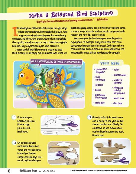 PAGES 8-9: NUR’S NOOK: MAKE A BALANCED BIRD SCULPTURE