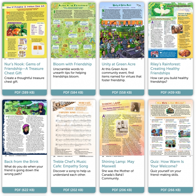 Brilliant Star presents a wide range of stories, activities, and songs that are ideal for complementing the Ruhi lesson plans in children’s classes. You can discover some below.