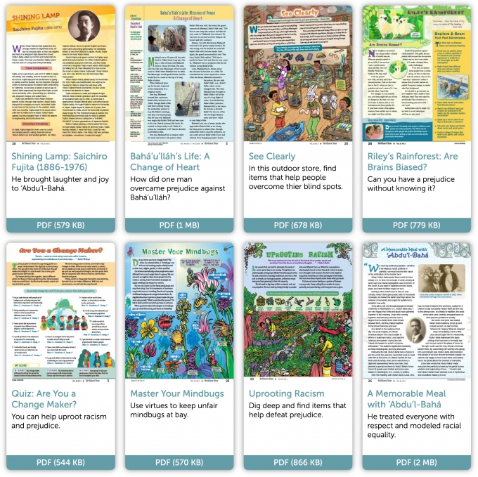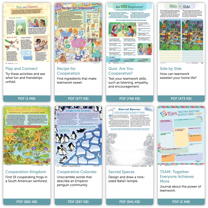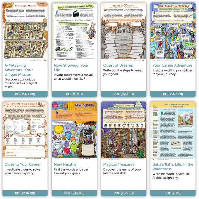 These twelve lessons (arranged in four sets) are for kids who have completed the first year of children’s classes in Ruhi Book 3, Grade 1 and the nine lessons of the first branch course. Each set has a theme, and three lessons foster development of spiritual qualities related to that theme. Kids are also encouraged to develop their skills in creative drama and visual arts. The Brilliant Star content below provides supplemental material to the published lessons for use in the classroom, at home, and in other spaces.
